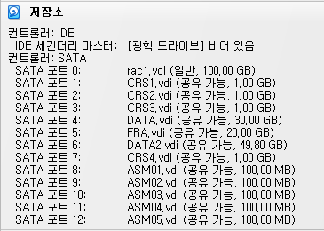 -- RAC 모든 노드에서 실행1,2 [root@rac1 ~]# oracleasm scandisks Reloading disk partitions: done Cleaning any stale ASM disks... Scanning system for ASM disks... Instantiating disk "IMSI3" Instantiating disk "IMSI2" Instantiating disk "IMSI1" [root@rac2 ~]# oracleasm listdisks CRS1 CRS2 CRS3 DATA DATA2 FRA IMSI1 IMSI2 IMSI3