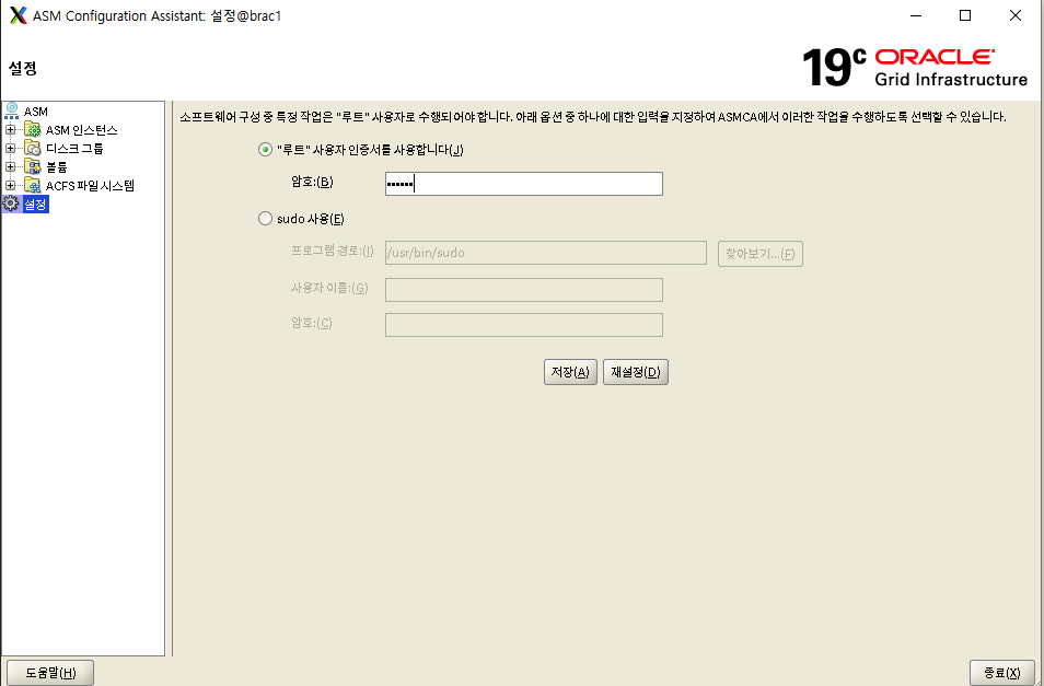 -- disk group 생성 SQL> create diskgroup asmdata external redundancy disk '/dev/oracleasm/disks/ASM01' ;